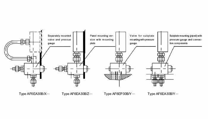 Gauge isolator valve AF6 is 3-way spool valve for manual operation. It serves to check the prevailing operating pressure.